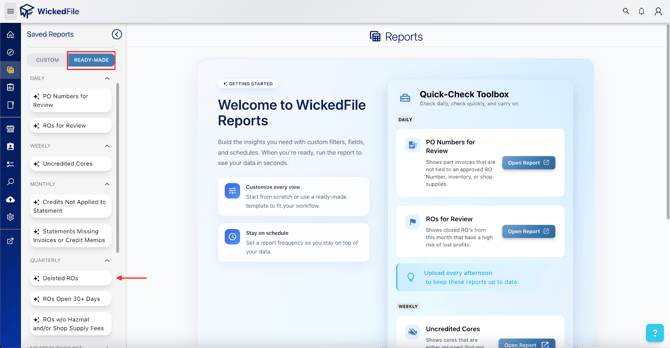 The Deleted Repair Orders Report identifies repair orders (ROs) that were removed from the Shop Management System (SMS). Deleted ROs can indicate errors, improper workflow, or potential theft or manipulation.